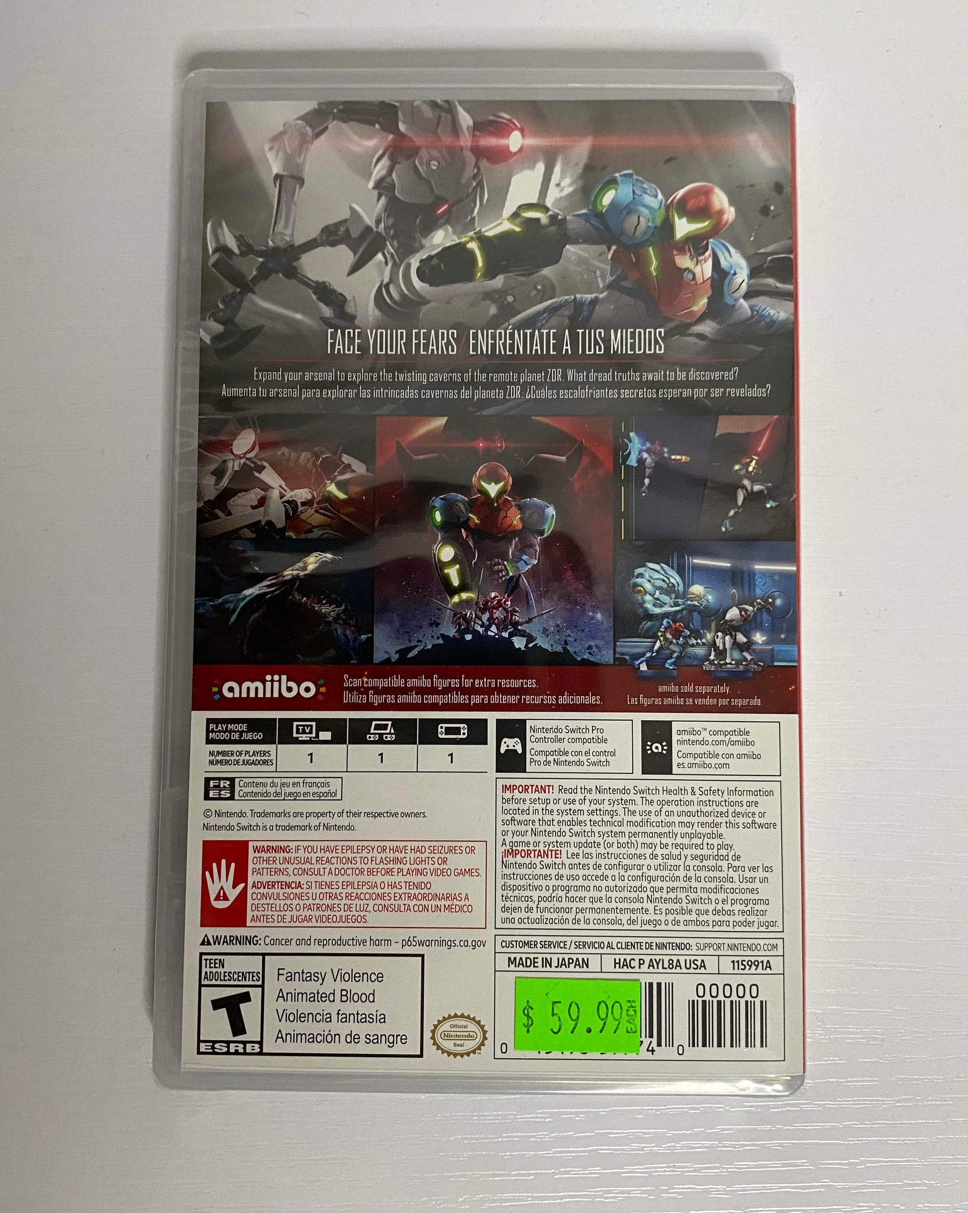 Metroid Dread is a 2021 side-scrolling, action-adventure game for the Nintendo Switch. Players take on the role of Samus Aran, an intergalactic bounty hunter, tasked with escaping the alien-infested planet ZDR. The game is a continuation of the story from Metroid Fusion and features eight distinct regions, more than any previous Metroid game !